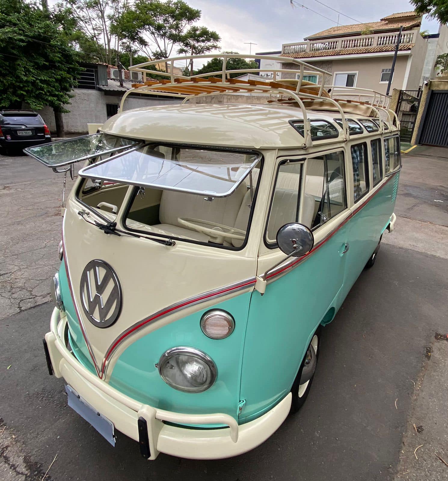 For sale 23 windows ! Nice refurbished bus, with good running 1500cc, new interior, ragtop and roofracks. Price €28.500 incl shipping and taxes to Europe.